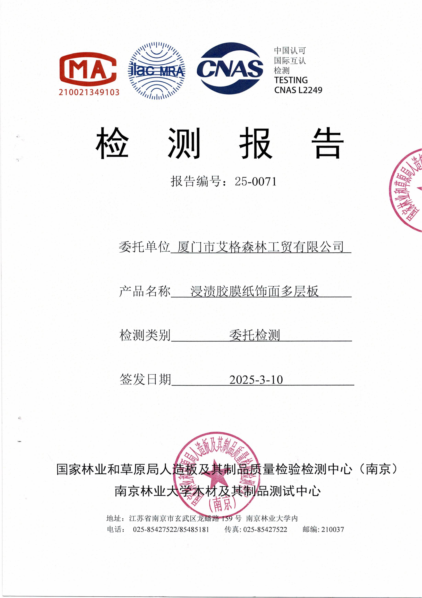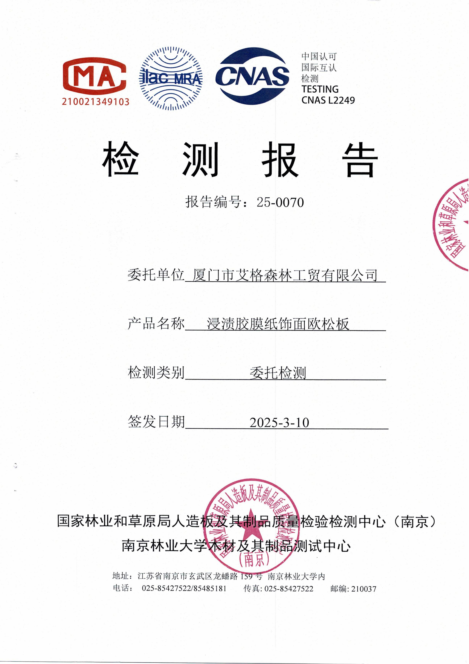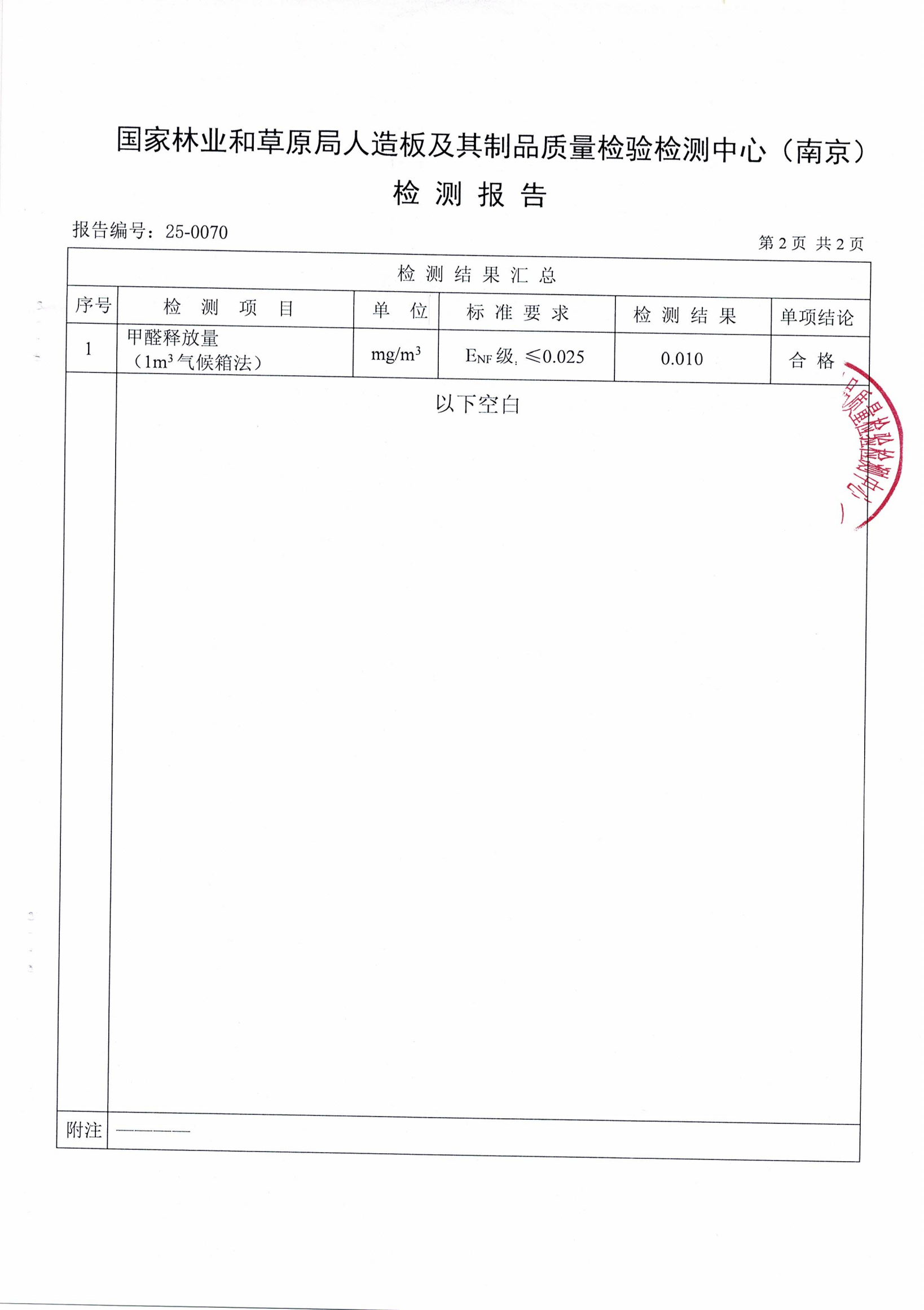 實木多層板ENF級檢測報告